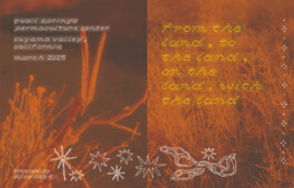 A 60-page zine created as part of an Artist Residency at the Cuyama Buckhorn. This publication explores the changing natural environment in the Cuyama Valley through the lens of seasonal change. All original 35mm photographs, illustrations, specimens, and text. Photos of the book (lower slides) courtesy of the Cuyama Buckhorn.